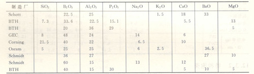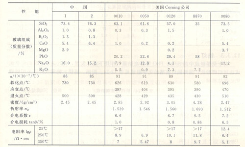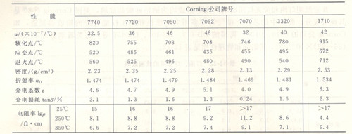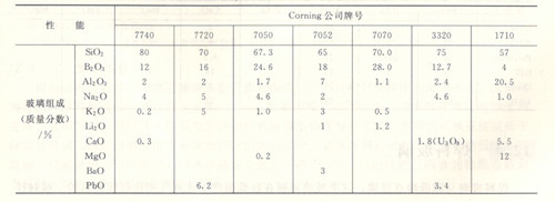 美國Corning公司的硬質玻璃組成與物理性質列于表2