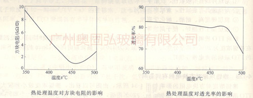 熱處理溫度對透光率影響如5圖所示,由圖5可以看出,熱處理溫度對透光率的影響,在熱處理溫度為475℃之前并不大,當熱處理溫度高于475℃后,透光率隨熱處理溫度的增高迅速下降。