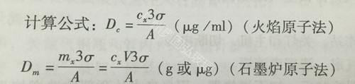 2、表示方法 以給出信號為空白溶液信號的標準偏差(o)的3倍時所對應的待測元素的濃度或質量來表示。